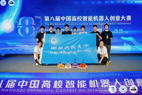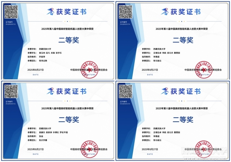 本次大赛,工学院派出4支队伍参加“智能机器人对抗”主题赛,在激烈的角逐中,我校参赛队伍不畏强手、沉着冷静、协同配合,在机器人创意、技术应用、算法设计和任务执行等方面展现了扎实的技术功底和创新能力,经过层层选拔,4支队伍全部入围国赛并最终获得优异成绩。其中,由曾玉林、田凡、肖锋、张宇乐组成的“惊鸿过隙队”,赤列晋美、翟智勇、唐涛、张书杰组成的“勇敢向前冲队”,袁康乐、袁崇津、许博伦、罗松平措组成的“知识学爆队”,旦增拉卓、李航、毋元杰、曹雯丽组成的“铁马破云队”同时荣获国家二等奖。优异成绩的取得,离不开乔丽萍、李鹏、张迪、李景超等指导教师团队的悉心指导与辛勤付出,在赛前准备和现场调试过程中,指导教师与同学们并肩作战,克服了多项技术难题,确保了参赛队伍的最佳发挥。