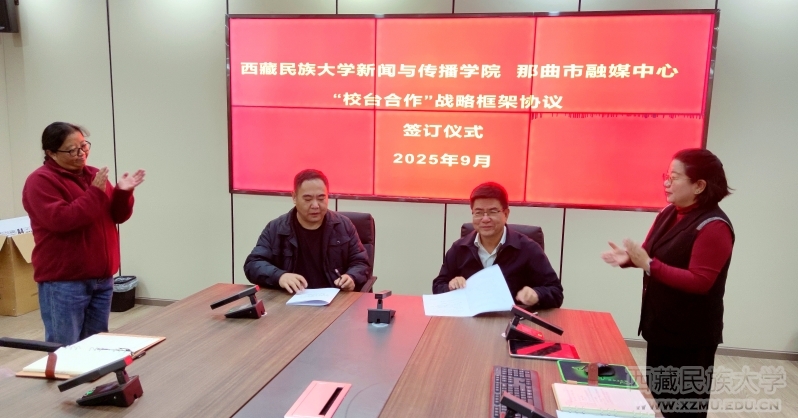 新闻与传播学院深耕雪域高原新闻传播高等教育,坚持以马克思主义新闻观为指导育人。学院已发展成为拥有多个本科专业和新闻与传播一级学科硕士点的重要基地,其播音与主持艺术专业为省级一流本科专业建设点,并长期聚焦“西藏对外传播”与“新媒体与民族文化传播”等特色研究方向。那曲市融媒体中心作为藏北主流舆论阵地,在传递党的声音、服务地方发展方面作用关键。本次合作受到那曲市委宣传部的高度重视,西藏自治区那曲市委常委、宣传部部长周清科,那曲市委宣传部副部长、市融媒体中心党组书记杜林春,那曲广播电视台副台长索朗等领导共同出席并参加了相关活动。