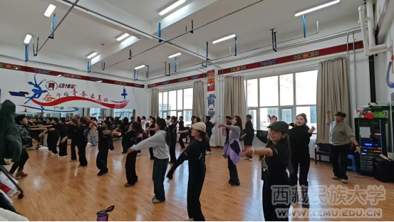 如果说广场上的携手共舞,是民族情感的自然流淌与迸发,那么谐园4楼排练厅内,西藏民族大学民族歌舞社团负责人刘睿与学生久美多吉对每一个舞蹈动作的精雕细琢、刻苦研磨,则藏着师生们对文化交融更深层、更自觉的坚守与追求。