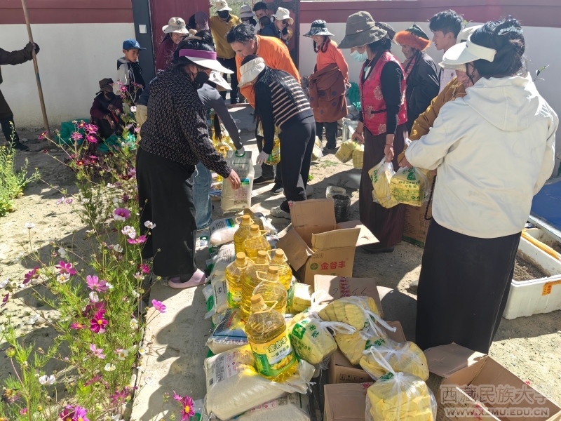 慰问物资发放时,驻村工作队成员与村“两委”干部们将提前准备好的大米、食用油和砖茶整齐摆放,有序递到73户村民手中。同时,工作人员还为每位村民献上洁白的哈达,致以“生活幸福、家庭美满”的真挚节日祝福。
