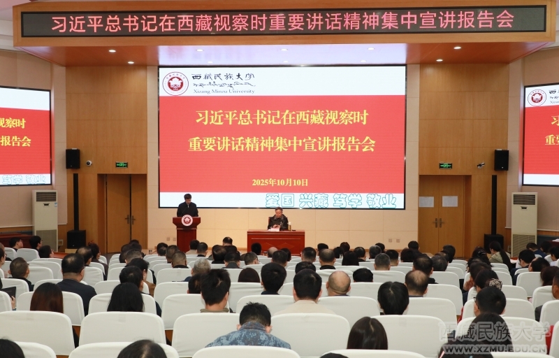10月10日上午,学校举办习近平总书记在西藏视察时的重要讲话精神宣讲报告会,邀请自治区宣讲团成员、自治区文联原党组书记沈开运作主题宣讲,学校党委领导及县处级以上领导干部等300余名师生与会,会议由学校党委书记、副校长采守宽主持。