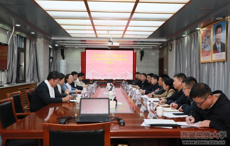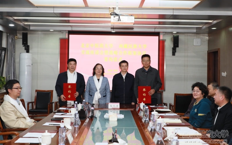 10月14日,北京中医药大学党委书记王瑶琪,党委常委、副校长闫振凡一行来访我校,与我校签订战略合作框架协议,并召开座谈会。学校党委书记采守宽出席签约仪式并讲话,党委副书记、校长罗旺次仁,党委副书记次仁旺堆,党委常委、副校长次旦玉珍参加签约仪式,党委常委、副校长张继旺主持签约仪式。两校相关部门负责人与会。