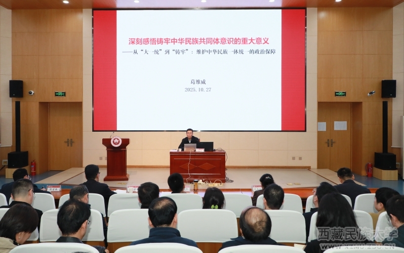 10月27日下午,学校举办铸牢中华民族共同体意识宣讲报告会,邀请教育部民族教育司原一级巡视员葛维威作主题宣讲。学校党委领导及县处级以上领导干部等300余名教师与会,会议由学校党委副书记、校长罗旺次仁主持。