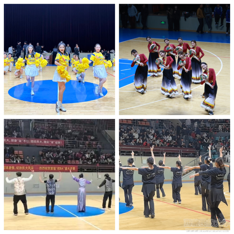 赛事期间配套活动与现场表演环节衔接紧密、相得益彰。除各学院组织的20—30人拉拉队在中场休息时呈现展现多民族文化交融的精彩表演外,男女三分球大赛的同步举办进一步丰富了“健康民大”赛事体系。在决赛现场,体育学院、校舞蹈队、法学院和教育学院等啦啦操队联袂献上高水平表演,配合网络直播向全校师生同步呈现,极大提升了赛事影响力与参与度。联赛在体育学院与教育学院女子组、法学院男子组的友谊表演赛中圆满落下帷幕。这些精心设计的环节充分体现了赛事“以体育人、以文化人”的育人宗旨。