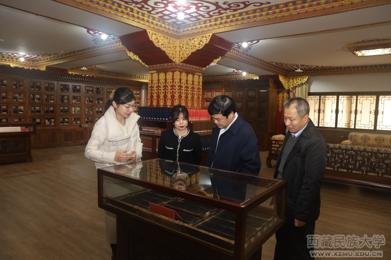 捐赠仪式结束后,与会人员参观了渭城校区图书馆藏学文献信息中心、藏族木刻版画艺术陈列室。