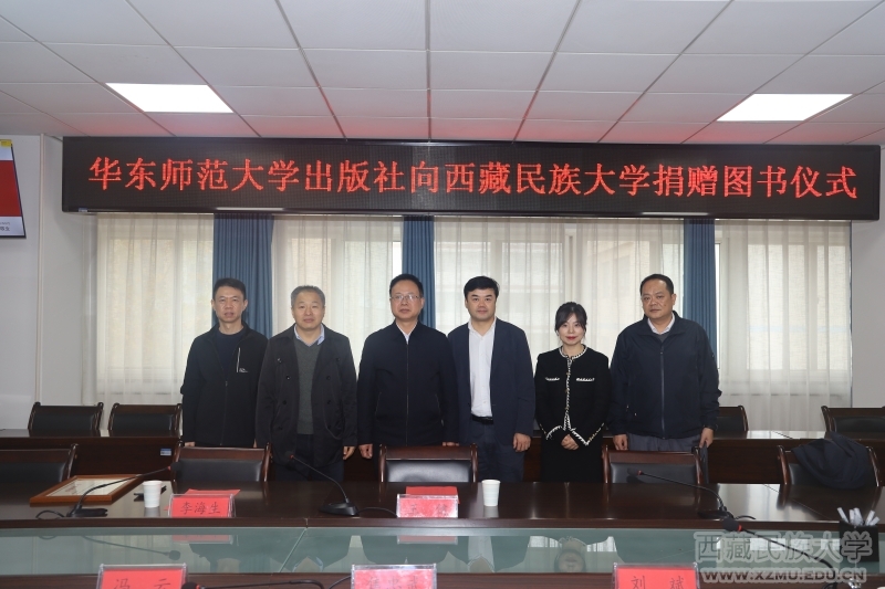 11月7日下午,华东师范大学出版社向西藏民族大学捐赠图书仪式在我校渭城校区新图书馆306会议室圆满举行。学校党委常委、副校长焦忠武,华东师范大学出版社党委书记、社长王健,华东师范大学出版社党委副书记、纪委书记李海生出席捐赠仪式,党委(学校)办公室副主任刘斌、教务处副处长陈烽、图书馆副馆长冯云及相关部门负责人参加。捐赠仪式由冯云主持。