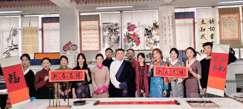 阵地建设“有形”,筑牢育人根基。步入位于社科楼的书法实训基地,墨香扑面而来。一幅幅汉藏文书法作品相映成趣,既有以“五个认同”“四个与共”为核心要义的箴言警句,也有传承千年的中华经典诗文。这里不仅是一个艺术空间,更是一个沉浸式的教育场域。