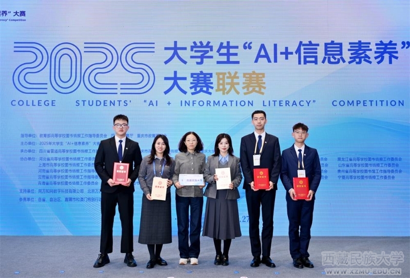 11月26至28日,2025年大学生“AI+信息素养”大赛联赛暨高校信息素养教育教学工作研讨会在四川成都举行。本届大赛吸引了全国1355所高校的逾35.9万名学子积极参与。经过校赛、省赛的层层选拔与激烈角逐,50支本科生队伍与29支研究生队伍晋级全国联赛。由学校图书馆选拔的2024级图书情报专业研究生段翃宇、高梓亮、张苑博组成的“图情三杰队”,由图书馆副馆长冯云、张淼研究馆员及管理学院石敏老师带队赴成都参加全国联赛。