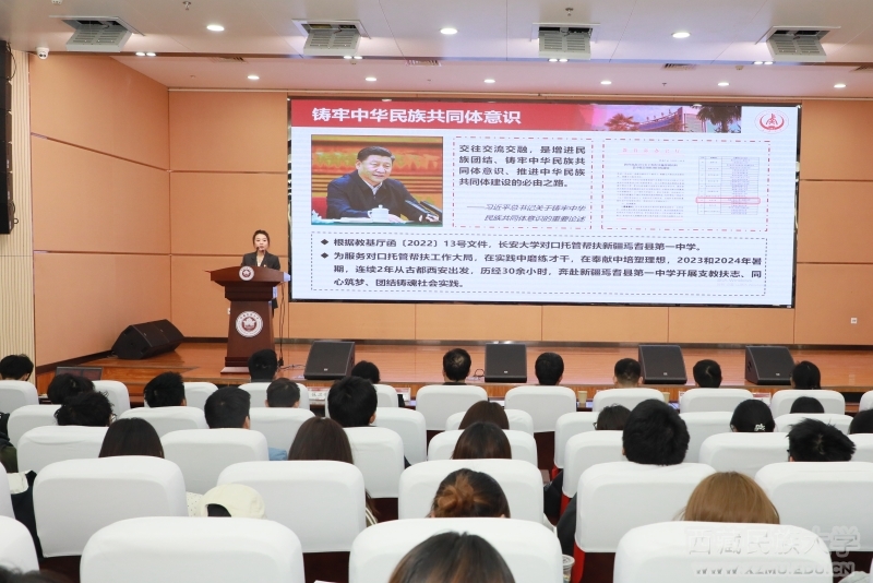 来自省内高校的宣讲团成员分享了生动感人的民族团结故事。长安大学侯晓庆以《青春筑梦支教路 携手共绘民族情》讲述了支教路上的青春印记;西安交通大学杨以涛在《走出小我 策马向前》中展现了当代青年的责任担当;西北政法大学王迪通过《侗听》分享了侗族儿女融入中华民族大家庭的故事;我校学生唐柔雪以《铸牢中华民族共同体意识 讲好新时代团结故事》为题,讲述了“三面国旗”的故事。四位宣讲员结合亲身经历,用真挚的情感和鲜活的事迹,生动诠释了当代大学生对铸牢中华民族共同体意识的深刻理解和自觉践行,引发了现场师生的强烈共鸣。