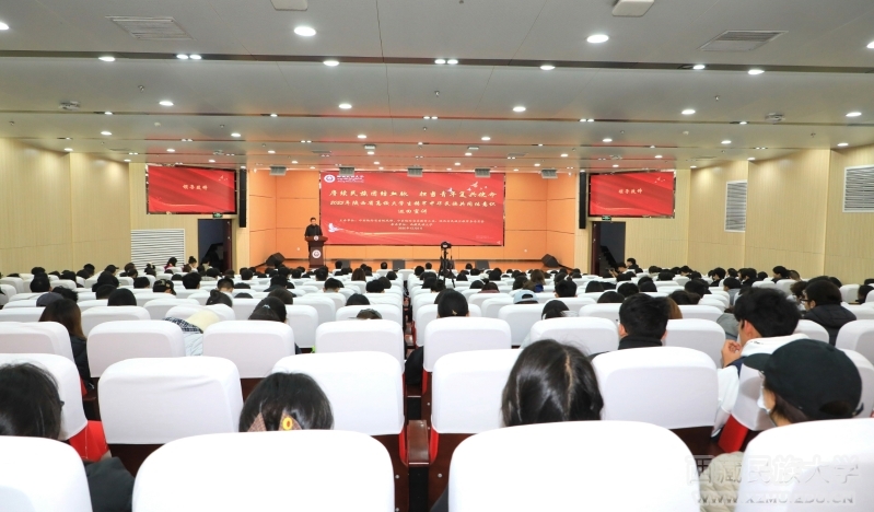 12月5日下午,学校在秦汉校区学术报告厅举办2025年陕西省高校大学生铸牢中华民族共同体意识微宣讲活动。陕西省民宗委党组成员、副主任王晓斐,学校党委常委,副校长王浩出席活动,省民宗委及学校相关部门负责同志、师生代表约300余人参加活动。