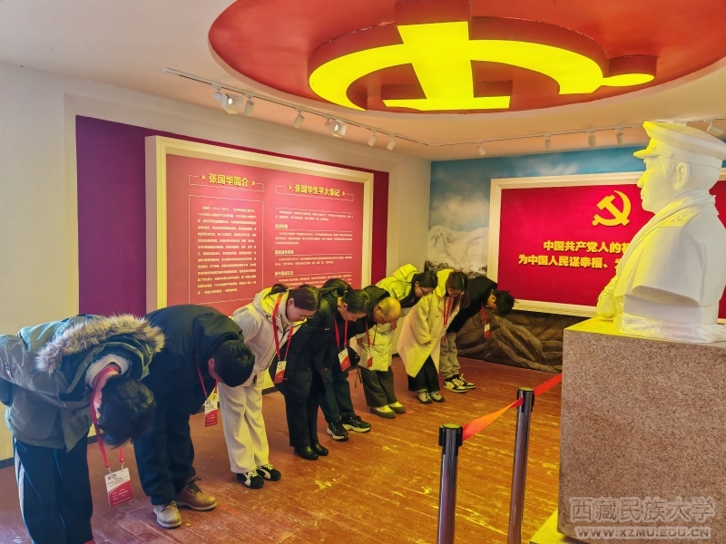 在易贡将军楼,师生们瞻仰张国华将军(西藏民族大学首任校长)雕像,肃立三鞠躬,敬献洁白哈达。随后,参观办公住宿地,深入了解张国华将军在雪域高原艰苦卓绝战斗与工作历程、办学事迹,传递民大学子对张国华校长绵长而崇高的追思,对“特别能吃苦、特别能战斗、特别能忍耐、特别能团结、特别能奉献”的老西藏精神有了更深刻的体悟。