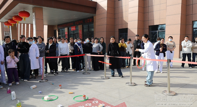 为庆祝第116个“三八”国际妇女节,展现附属医院女职工昂扬向上的精神风貌,3月5日下午,附属医院精心策划的“‘圈’住好运,‘套’出精彩”趣味活动在综合楼前精彩上演。全院女职工暂别繁忙的诊疗一线与行政岗位,共赴这场春日里的“童趣之约”。
