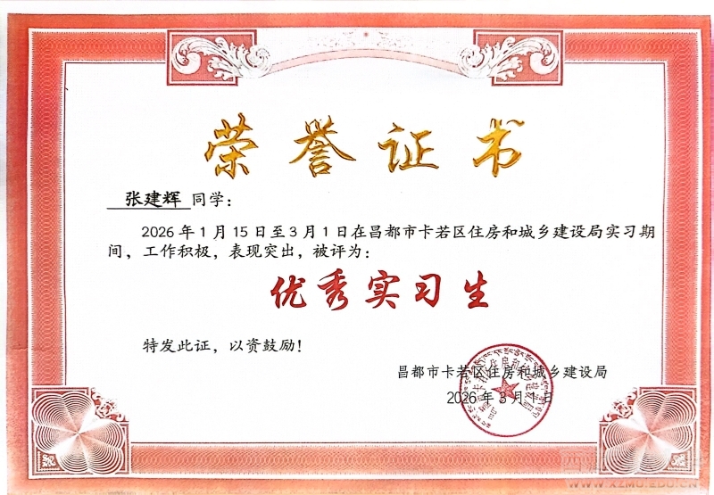 近日,财经学院收到来自昌都市卡若区住房和城乡建设局的感谢函,表扬2025财政班学生张建辉寒假在单位实习期间表现优秀,作出了积极贡献,获得主管部门的高度认可。