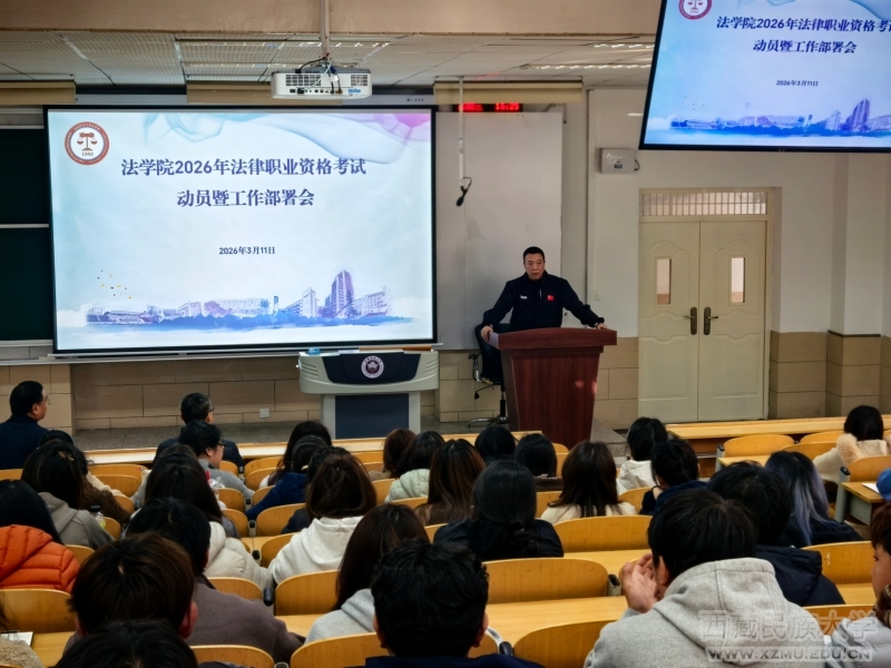 为鼓励法学专业学子备战国家统一法律职业资格考试,提振备考信心、调动学习积极性,3月11日,法学院举办2026年法考动员大会。学院党委书记戴强、院长张林、副书记陈昌茂、副院长姚海放及全体辅导员参加会议。