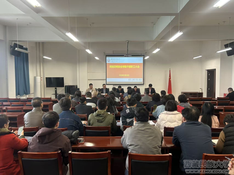 3月26日,网络空间安全学院召开干部职工大会,宣布学校党委关于网络空间安全学院干部任职决定。学校党委书记采守宽出席会议并讲话。党委常委、副校长次旦玉珍主持会议。相关职能部门、网络空间安全学院领导班子及全体职工参加会议。