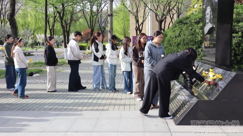 活动在庄严嘹亮的国歌声中正式拉开序幕。全体人员神情肃穆、整齐列队,面向张国华校长雕像肃立致敬,集体三鞠躬,以最庄重的礼仪深切追思老校长为党和人民事业、为西藏革命建设与民族教育事业建立的不朽功勋。入党积极分子代表依次上前,恭敬地向雕像敬献鲜花,寄托对革命先辈的崇高敬意与深切缅怀。