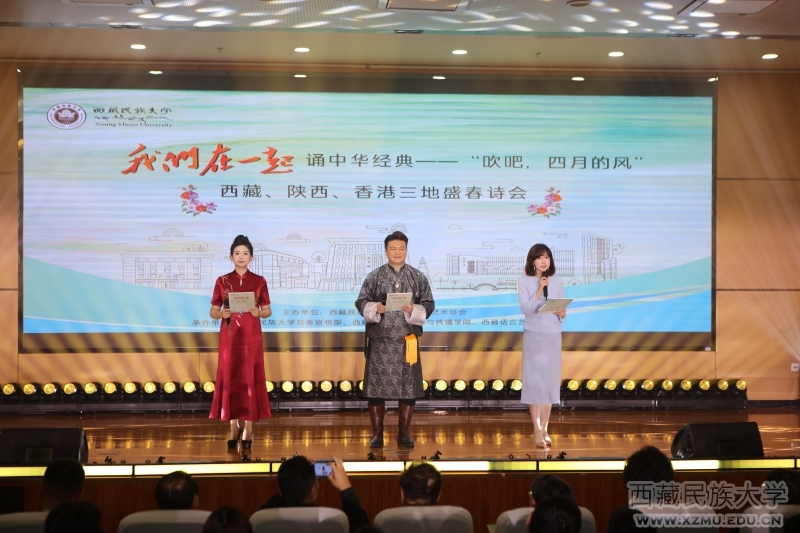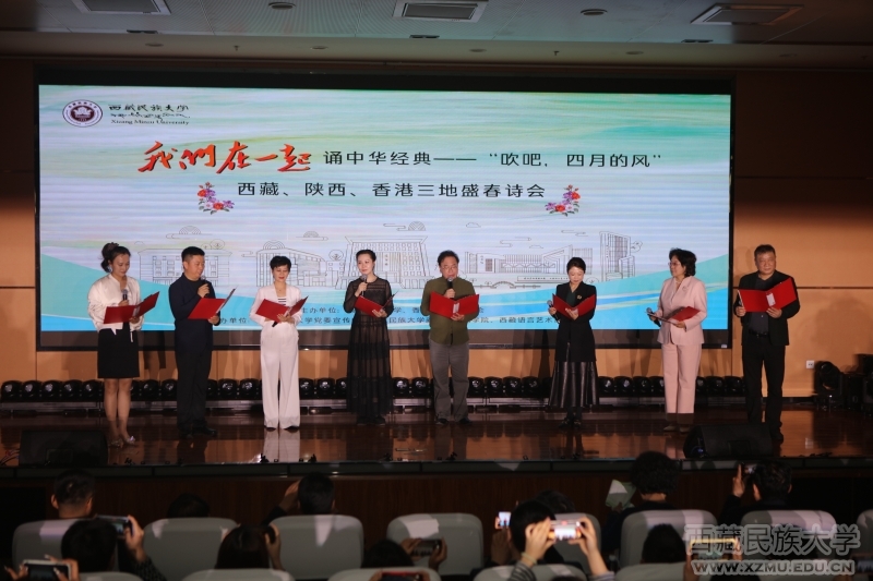 4月11日,一场以地域交往、文化交流、民族交融为特色,以传承中华优秀传统文化为旨归的艺术盛宴在我校秦汉校区隆重举行。这场名为“我们在一起”诵中华经典——“吹吧,四月的风”西藏、陕西、香港三地盛春诗会的文化艺术活动由我校主办,学校党委宣传部、新闻与传播学院、西藏语言艺术协会共同承办,陕西省朗诵协会协办。我校党委书记采守宽,党委常委、副校长扎堆,党委常委、宣传部部长张宏伟,党委常委、组织部部长许铿和学校各部门师生出席诗会。诗会邀请来自香港、陕西的艺术家和高校专家学者,汇集了西藏、陕西、香港高校的语言艺术专业学子,同时,还特邀西藏广播电视台著名藏汉双语主持人达娃桑布领衔主持,是一场名副其实的地域、文化、民族交汇的文化活动。