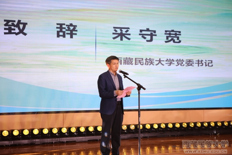 采守宽在诗会开始前发表了热情洋溢的欢迎辞。他表示,此次活动以“我们在一起”为主题,以诗为媒,将雪域高原的雄浑、三秦大地的厚重与东方之珠的璀璨相连,将各民族中华儿女的心汇聚在一起,这不仅是三地诗友与学子的一次雅集,更是一场跨越山海的文化交融与心灵对话。他希望广大师生能在诵读经典中汲取智慧与力量,在品味诗韵中深化对中华文化的认同,引导大家像石榴籽一样紧紧抱在一起,构筑中华民族共有精神家园,共同为实现中华民族伟大复兴凝聚磅礴精神伟力。