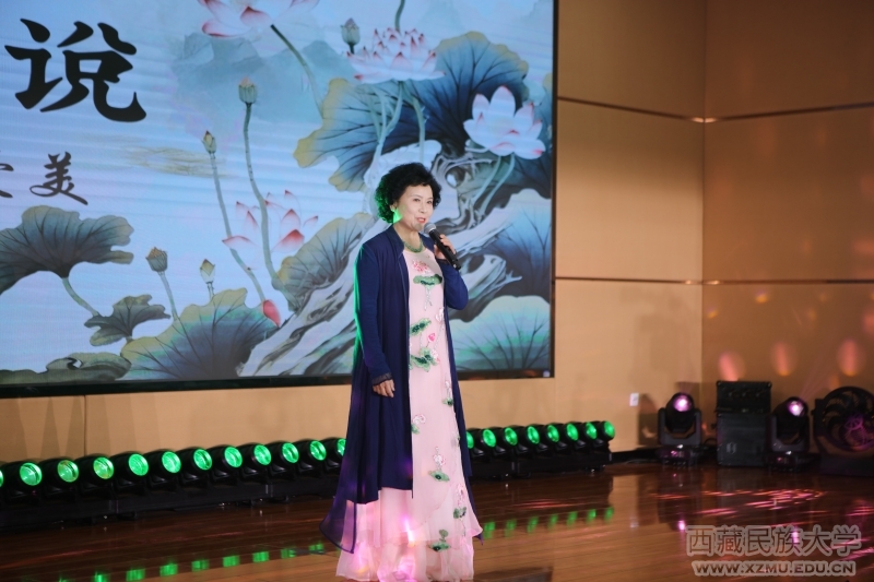 中国电视艺术家协会主持人委员会副会长、陕西电视台播音指导,享誉三秦大地的陕西省第一位电视新闻播音员陈爱美朗诵了经典古文《爱莲说》。清润嗓音与古韵悠扬的诵读让在场观众沉浸在周敦颐对文人高洁品格的生动诠释之中。
