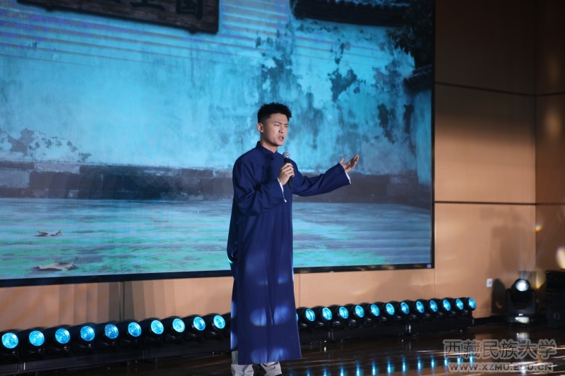陕西青年朗诵家林晓凡以唐伯虎《桃花庵歌》为基础创作的兼具表演特色与演讲特征的作品让观众们耳目一新。他用一句“大家都要找到自己心里的桃花庵”鼓励青年学子们要以乐观积极的态度和大海一样的胸襟拥抱希望与生命。