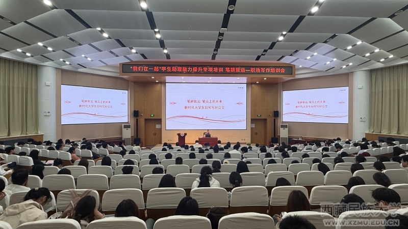 为进一步落实立德树人根本任务,紧扣学校关于2026年人才培养的重点工作,助力勤助学生实现知识运用、能力锻炼与素养培育一体化发展,4月23日下午,我校勤助学生综合能力提升活动之“笔耕致远 职场写作”专题培训在渭城校区学术报告厅举行。本次培训邀请学校党委(学校)办公室副主任唐玮担任主讲。来自全校各单位的勤工助学及“三助一辅”在岗学生共计330余人参加培训。