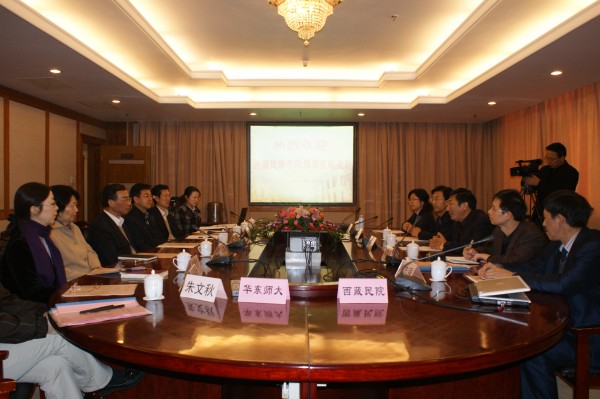 座谈会上,赤列旺杰书记对华东师范大学多年来在学科专业建设、人才培养、图书网络资源建设等工作中给予我院的无私援助表示衷心感谢,并希望华东师范大学在今后的对口援助工作中,一如既往地在学科发展、队伍建设以及资源共享等方面给予学院大力支持,希望在以后的对口支援工作中进一步创新援助模式,深化合作,实现互利双赢,特别对华东师范大学与学院就哲学专业的深度合作——共同承担“藏传佛教与西藏和谐社会建设”重大课题研究给予了高度评价。华东师范大学庄辉明副校长表示,两校多年来在对口援助工作中建立了深厚友谊,交流与合作日趋广泛、渐趋深入。华东师范大学会在今后的工作中继续对西藏民族学院学科发展、队伍建设、人才培养、科学研究等方面给予大力支持和帮助。两校还就2011年对口援助工作计划中有关学科建设、科研合作、人才培养、图书网络资源建设等问题深入友好地交换了意见,达成了一致共识。双方还签署了《西藏民族学院与华东师范大学联合培养教育技术学专业本科生协议书》、《西藏民族学院部分专业优秀本科学生到华东师范大学插班学习协议书》。