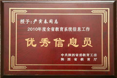 近日,陕西省教工委、教育厅表彰了2010年度全省教育系统信息工作先进集体、先进工作者、优秀信息员,党委(学院)办公室获“先进集体”荣誉称号,严寅春同志获“优秀信息员”荣誉称号。全省各地市、各高校以及教育厅各职能部门参加了评选,共评选出先进集体36个、先进工作者33人,优秀信息员71人。