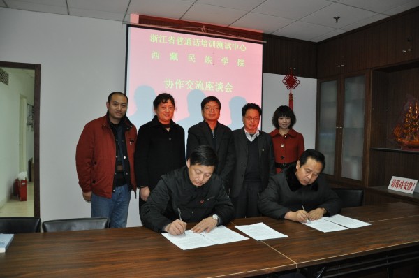 12月20日至25日,学院党委常委、副院长、院语言文字工作委员会主任乔根锁一行4人前往浙江省普通话培训测试中心、浙江科技学院学习考察,就浙江省语言文字工作委员会援助我院普通话测试工作站建立信息化管理系统与相关负责同志进行了座谈,并签订捐赠协议。自治区国家语言文字工作委员会办公室副主任王建社、学院普通话测试站站长丁小丽陪同考察并参加了座谈及捐赠仪式。