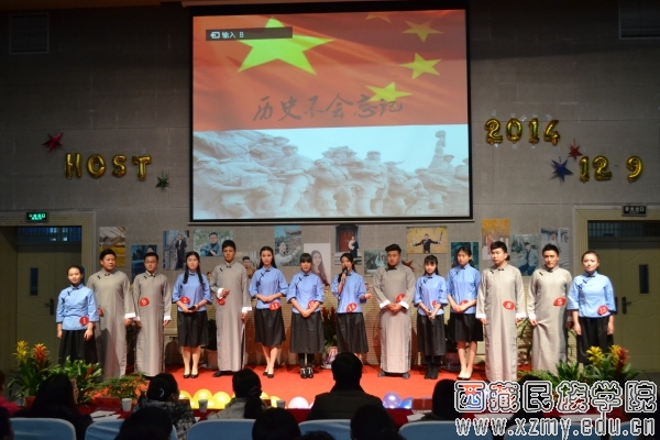 活动开场,十四位选手表演了诗朗诵《历史不会忘记》,选手们情绪饱满,表达了对一二·九运动的深切怀念,并向号召青年大学生应该用行动展现青春的风采,呼吁全场青年学生“让中国为我们喝彩,让世界为我们喝彩”。