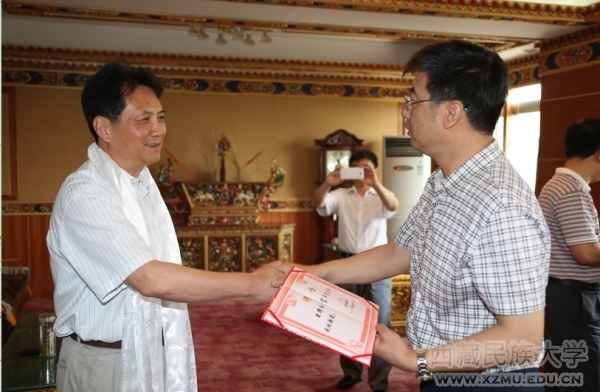 戈富平教授对此次能够受聘为西藏民族大学兼职教授,向学校表示感谢,他高度评价了“担当奉献、求真务实、和谐发展”的民大精神,并表示今后愿意为我校外语学院开展印地语教学研究和专业发展提供智力支持,为学校的建设和发展作出贡献。