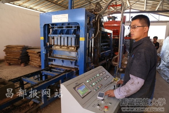 学校派驻昌都市乌雅村的村党支部第一书记王卫同志在村办自动制砖厂