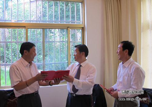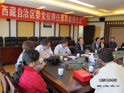 在互聘仪式上,我校扎西次仁同志和自治区党校副校长、教授牛治富同志分别讲话,希望两校能够利用各自的优势加强合作,不断探索合作培养研究生教育的有效途径。狄方耀同志在会上向双方领导汇报了此次带领中国少数民族经济2009级硕士研究生在自治区党校学习和考察的体会、收获与希望。