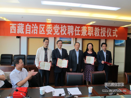 7月27日和8月5日,学校党委书记、副院长赤列旺杰同志和学校党委副书记、纪委书记、副院长扎西次仁同志,在拉萨分别出席了自治区社科院和自治区党校举行的聘任仪式。在自治区社科院举行的聘任仪式上,赤列旺杰同志向自治区社科院党委书记、著名西藏经济问题研究专家孙勇同志颁发了聘书。他在讲话中希望两个单位今后要在学术研究与交流、联合培养硕士研究生等高层次人才方面加强合作,为西藏的高层次人才培养做出应有的贡献。孙勇同志在讲话中表示,一定不辜负西藏民族学院的信任,首先要尽到自己作为兼职教授和兼职硕士研究生导师的责任,赞同赤列旺杰同志提出的今后要充分发挥两个单位优势的建议,进一步加强合作和交流。