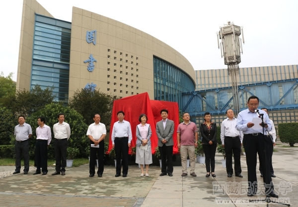 9月15日上午,张国华校长雕像揭幕仪式在新图书馆前隆重举行。学校党委书记杜建功同志和张国华校长之女张小康女士为雕像揭幕,学校党委副书记、校长扎西次仁,张小康女士分别致辞。