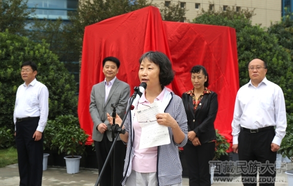张国华校长之女张小康女士在致辞中深情地讲述了学校创建的历史背景和深远意义。学校从产生建立,到发展至今,每一步都与西藏、与国家的进步息息相关。西藏创造了短短几十年跨越上千年的历史奇迹,离不开西藏民族大学几代师生的贡献和功劳。50多年,学校为西藏培养了数万各专业民族干部和技术人才,遍布西藏的每个角落,被西藏各族人民誉为“西藏干部的摇篮”。她说,张国华作为学校的第一任校长,同时也是50年代以“十八军”为主体的进藏部队的一员,是“老西藏精神”的缔造者、践行者之一。为张国华校长建立塑像,不仅仅是为了纪念他一个人,更是为了纪念为了西藏革命和建设事业奋斗一生甚至献出生命的老前辈。她勉励每一个学生,在这所拥有优良传统的高校里面,用知识武装自己,为建设美丽新西藏而努力。