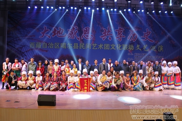 为加强民族团结,促进民族交往交流交融,11月18日晚,西藏自治区噶尔县民间艺术团“大地感恩 共享历史”文艺巡演在我校成功举办。校领导扎西次仁、欧珠、邹亚军观看了巡演,咸阳市、渭城区和噶尔县相关部门领导和部分援藏干部出席本次巡演。