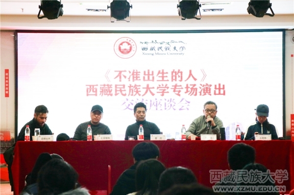 在现场提问环节,在场师生踊跃向剧组提问。看过演出的师生们纷纷表示,整场话剧令人动容,在精心的编排和演员们的深情刻画下,一曲从黑暗的农奴社会走进光明的社会主义社会的命运抗争高歌呈现在眼前。主演嘉增达杰谈到为了演好老态龙钟的扎西,他花了几个月时间上街观察步履蹒跚的老年人,从说话方式到走路都一一模仿。从台前到幕后,从语言、音乐到舞台设计,在场师生深入了解到了《不准出生的人》许多创作细节,喜爱表演艺术的同学们还现场请教了有关表演的技巧和原则。
