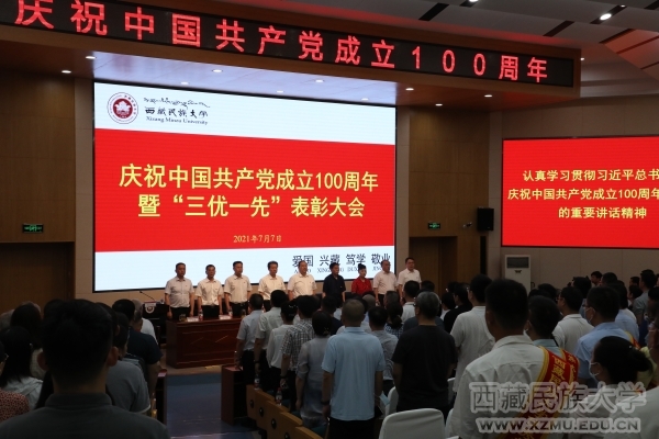 7月7日上午,学校隆重召开庆祝中国共产党成立100周年暨“三优一先”表彰大会。热烈庆祝党的百年华诞和西藏和平解放70周年,表彰我校优秀共产党员、优秀党务工作者、优秀管理干部和先进基层党组织。激励全校各级党组织和广大党员干部继承弘扬伟大建党精神,不忘立德树人初心,牢记为党育人为国育才使命,以史为鉴、开创未来,在推进学校教育事业高质量发展中更显担当、再续华章,为建设有中国特色、西藏特点,区域一流的高水平综合性大学,建设团结富裕文明和谐美丽的社会主义现代化新西藏而不懈奋斗。