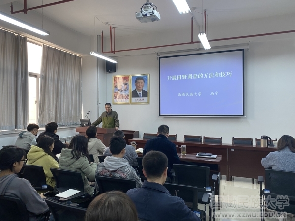 马宁从开展田野调查的作用入手,详细讲解了田野调查选题的基本原则、田野调查的主要方法、实施田野调查的技巧等,并强调了田野调查的注意事项。讲座中,马宁教授分享了他带领学生多次在西藏进行田野调查的经历和经验,并结合自身的科研经历鼓励老师和同学们认真读书、脚踏实地做科研,为国家和社会的需求服务。