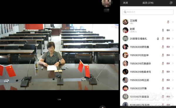 胡艳要求,全体学生首先要提高政治站位,保持政治定力,深化思想认识。在困难和挑战面前要迎难而上,展现出民大学子的责任担当,自觉抵制各种不良信息,做到不信谣、不传谣、不造谣。在工作学习中发挥青年学生干部先锋模范作用,营造积极向上的班风、院风。全体同学要切实增强“四个意识”,坚定“四个自信”,做到“两个维护”,以崭新的姿态喜迎党的二十大召开。其次要树立远大的目标,做好长远的人生规划。新学年,新起点,全体学生结合自身情况和就业形势,制定好学业规划和职业规划,珍惜大学时光,担负社会职责和家庭职责,潜心读好书,学好习,为自己的人生奠定坚实的基础,储备更多的能量,今后为国家为家乡做出应有的贡献。最后要求坚持疫情防控不放松,严格遵守属地疫情防控管理规定,严格遵守两省区、学校关于疫情防控的相关要求。做好每日健康打卡,调整好心态,勇于克服困难,发挥党员、学生干部的桥梁纽带作用,关心关注周围的同学,组织开展好各类班级活动,加强班级凝聚力,确保疫情防控、线上上课、班级管理、学生活动等各项工作顺利开展。