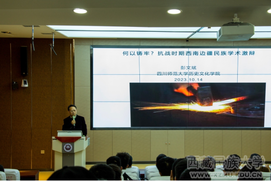 10月14日,民族研究院特邀四川师范大学彭文斌教授作题为《何以铸牢?抗战时期西南边疆民族学术激辩》的学术讲座。讲座由周毓华教授主持,民族研究院部分师生和全体研究生聆听讲座。