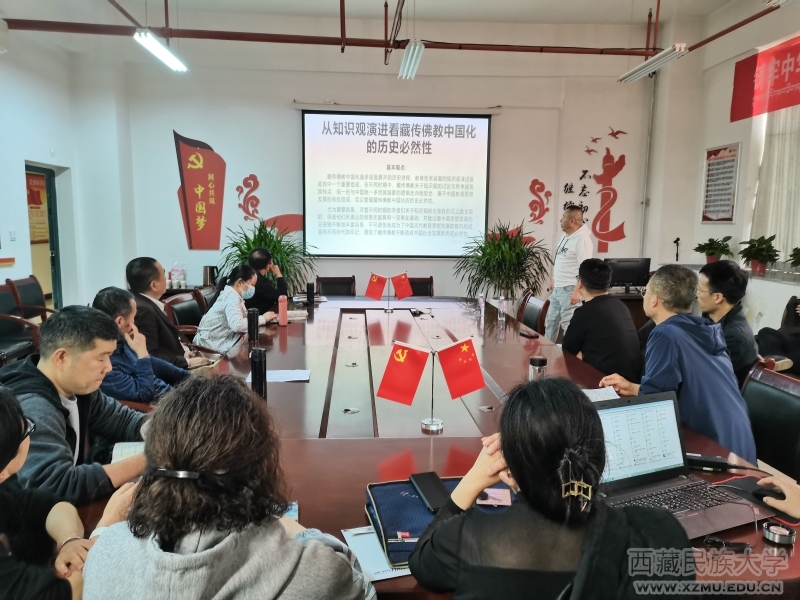 张屹作题为《从知识观演进看藏传佛教中国化的历史必然性》的学术交流。他分析了藏传佛教中国化多层面展开的历史过程,认为藏传佛教关于知识观的讨论和思考虽各具特点,但与中国统一多民族国家历史发展相契合,指出只有不断中国化才是藏传佛教的未来坦途。