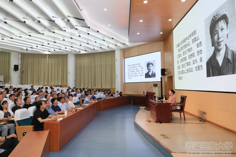 全国高校思政课名师工作室主持人、马克思主义学院曹水群教授以《用实际行动继承和发扬“老西藏精神”》为题作了报告,她以“老西藏精神”为主线,从主要概念的产生及发展历程出发,围绕“老西藏”和“老西藏精神”、孕育“老西藏精神”的独特环境、“老西藏精神”的新时代内涵、以实际行动继承和发扬“老西藏精神”等四个方面展进行了讲解。首先,她向与会干部职工梳理了“老西藏”及“老西藏精神”的概念阐释及发展演变历程,并结合时代发展详细解读了“老西藏精神”由最初的“三个特别”到如今内涵丰富的“特别能吃苦、特别能战斗、特别能忍耐、特别能团结、特别能奉献”这“五个特别”的表述。其次,她从自然地理环境、交通及物质条件、语言文化、政治环境等方面引导大家深刻了解“老西藏精神”的孕育环境,并以习近平总书记在中央第七次西藏工作座谈会上的重要讲话精神为指引,结合自身多年来深入西藏田间地头、边境一线开展调研的真实经历,通过讲述一个又一个扎根高原、服务群众、无私奉献、感人至深的干群故事,展现了鲜活的“老西藏精神”,生动阐释了“老西藏精神”的新时代内涵。最后,在讲到如何以实际行动继承和弘扬“老西藏精神”时,她倡导全校广大干部职工要在明确责任、增强能力、锤炼作风上下功夫,以自己的实际行动传承和发扬“老西藏精神”。