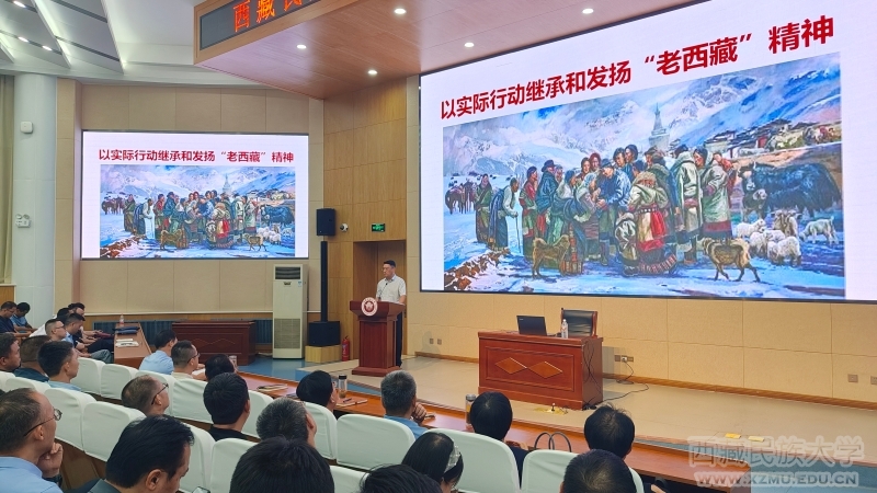 为深入学习宣传贯彻党的二十届三中全会和自治区党委十届六次全会精神,促进学校干部职工了解区情,引导干部职工知藏、懂藏、爱藏,激发干部职工干事创业的激情和热情,按照学校党委的安排和部署,9月14日,学校在渭城校区举办“老西藏精神”报告会。学校党委副书记次仁旺堆,党委常委、宣传部部长张宏伟出席报告会,全体县处级领导干部、各学院基层党组织书记及新进教职员工近300人现场聆听了报告。校党委常委、组织部部长陈敦山主持报告会。
