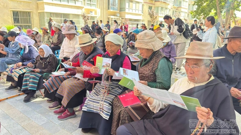 在拉萨市城关区蔡公堂街道恩惠苑社区调研,为群众发放“推普”宣传册