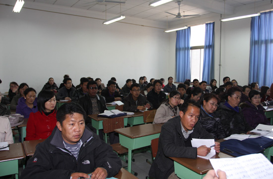 为全面提高自治区中小学骨干教师教育教学能力,提升全区中小学教师整体素质和教育理念,根据《教育部 财政部关于实施“中小学教师国家级培训计划”通知》和《国培计划----中西部农村骨干教师培训项目实施方案》要求,区教育厅组织开展了此次培训。结合岗位培训特点,我们教育学院承办了2010年西藏中小学教师置换脱产研修培训任务。此次培训为期四个月,来自西藏各地区承担小学英语和语文学科教学任务的50名教师参加了此次培训。教育学院作为全区教育科学研究重要基地,承担了此次培训的教学任务。
