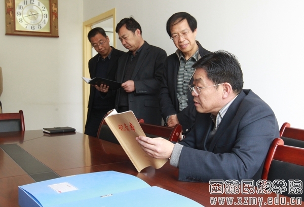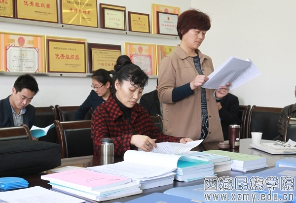 下午2:30,调研组准时来到马克思主义学院党政办公室、教学办公室和各教研室活动场所查阅党建资料和思政课相关教学资料,重点考察基层党组织(党支部)和基层教学组织(教研室)建设情况。在党政办公室,杜建功书记带领调研组成员重点翻阅了党建工作记录及相关文件材料,并询问了学生党支部建设情况、学生党员的比例及学生党支部日常工作的开展情况。在教学办公室,调研组查阅了师资队伍建设、教学改革材料,以及研究生培养计划、教学方案、学术论坛等工作开展的资料,着重了解《毛泽东思想和中国特色社会主义理论体系概论》(自治区精品课程)、《马克思主义哲学基本原理》(校级重点课程)、哲学专业(校级品牌专业)等课程和专业的情况。在教研室活动场所(3307室),调研组翻阅了《马克思主义基本原理概论》、《中国近现代史纲要》、《毛泽东思想和中国特色社会主义理论体系》、《思想修养与法律基础》、《形势与政策》、《马克思主义四观两论》等课程的教材、教学大纲,以及自编思想政治教育教案、精彩教案、部分学生作业、思政课相关教学和科研成果,重点翻阅了教研室工作计划、工作总结、教研活动记录。