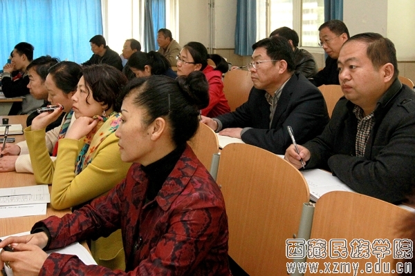 在随后的座谈会上,马克思主义学院院长杨维周教授首先汇报了思政课“两个转化”模式在教学中的落实情况,详细介绍了在教学过程中如何实现教材体系向教学体系转化,如何实现教学体系向学生认知体系和信仰体系转化的具体做法,以及当前思想政治理论课教学的困境与实现“两个转化”需要解决的其他问题。他说,“实现教材体系向教学体系转化”,首先必须吃透国家通用教材,通过动态教学研讨、集中备课机制,围绕五门课程教学内容要求进行转化;其次要结合实际抓好内容转换,联系西藏经济社会发展,联系西藏反分裂的实际,联系中国改革开放和现代化建设的实际,联系国际形势发展变化的实际,编写适合西藏高校大学生的五门课程标准教案,对思政课教学内容进行重塑;“实现教学体系向学生认知体系和信仰体系的转化”,一是开展分层次分类型教学,提高教学的针对性,根据学生不同知识基础、认知能力和思维方式,调整教学内容、教学方法,在考试考核方面也体现差异化原则,二是运用案例教学法、专题教学法、现代多媒体教学法等方法开展课堂讨论、实践教学来深化理论学习,使学生真正做到学理论、懂理论、用理论三者有机结合,化理论为方法,化理论为德性,全面提高学生的素质和能力。杨维周也直言“两个转化”教学改革中存在一些问题和困境:由于经费、安全因素等原因导致社会实践教学基地偏少且覆盖学生面较窄,希望学校支持在西藏日喀则(江孜抗英遗址)、山南(克松村)、林芝(社会主义新农村)、拉萨市(西藏革命、建设、改革历史博物馆)建立社会实践教学基地;“两个转化”过程中存在五门课程之间实施的不平衡,不同教师在教学实践中的个体差异等问题;思政课教师短缺和年龄老化;大班授课影响了教学效果等。哲学教研室主任王勇教授介绍了“两个转化” 在本教研室教学实践中的好经验和好做法,一是加强师资队伍建设和培训,团队教师先后参加了国家、自治区、陕西省的各级培训,对吃透教材非常有帮助;二是积极参加课改和参与课题研究,主动进行教学问题、理论问题的研究,在提高科研能力的同时,使教师自身对教学、理论能够自觉把握;三是在教学中联系“中国特色、西藏实际”,编写教学案例、精彩教案、大学生综合素质训练等教学资料,增强了教学的针对性和实效性。