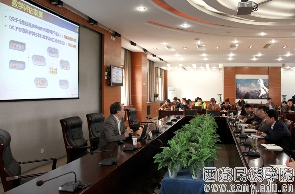 23日上午,林萍华教授做《本科教学审核评估范围释义》主题学术报告。学校领导、各二级学院负责人、部分职能部门负责人及各教研室主任、教学秘书等参加了报告会。报告会由池万兴副院长主持。林教授从评估框架、评估实施过程、评估要素释义三个方面将审核评估的内容进行了宏观和微观的阐述,内容简洁,思路清晰。他着重就审核评估的项目、要素、重点、要点进行了解读,详细讲述了专家进校考察的流程、学校自评报告的撰写要求、学校评建组织工作容易出现的问题、评估工作中容易出现的问题等。他强调审核评估的基础是学校自评,学校自评是学校自我反省的过程,专家审核主要帮助学校反思,其价值在于引导学校依据办学定位,设定适合的人才培养目标和相应的规格要求和质量标准,培养符合经济社会发展需求的高素质人才。