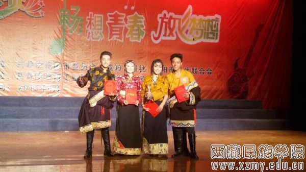 4月28日,咸阳市第七届大学生文化艺术节“陕西工院杯”歌手大赛在陕西工业职业技术学院举行。我校大学生合唱团成员赤烈永忠、贡桑拉姆、次仁德吉、仁青彭措四位同学以组合的形式参加了本次大赛,经过与咸阳市其他10所院校歌手的激烈角逐,参赛作品《牧人之恋》最终以9.82的高分荣获一等奖。我校大学生合唱团指导老师张继芳与其他高校教师代表共同担任评委。
